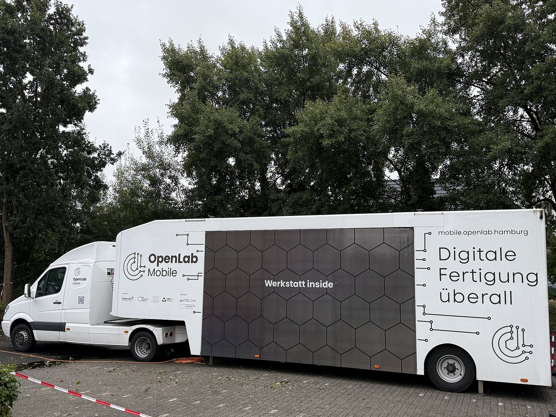 Unser OpenLab Mobile war beim CAT zu Gast. Als innovatives Projekt, das sich auf die digitale Fertigung konzentriert beinhaltet es mit unserem Truck eine mobile Lehr- und Innovationswerkstatt für Produkte der Zukunft. Ein besonderer Fokus liegt auf digitalen Fertigungstechnologien mit hohem Nachhaltigkeitspotenzial. Der Truck ist mit digitalen Fertigungsmaschinen ausgestattet, wie z.B. 3D-Drucker, CNC-Fräse oder Laser-Cutter.