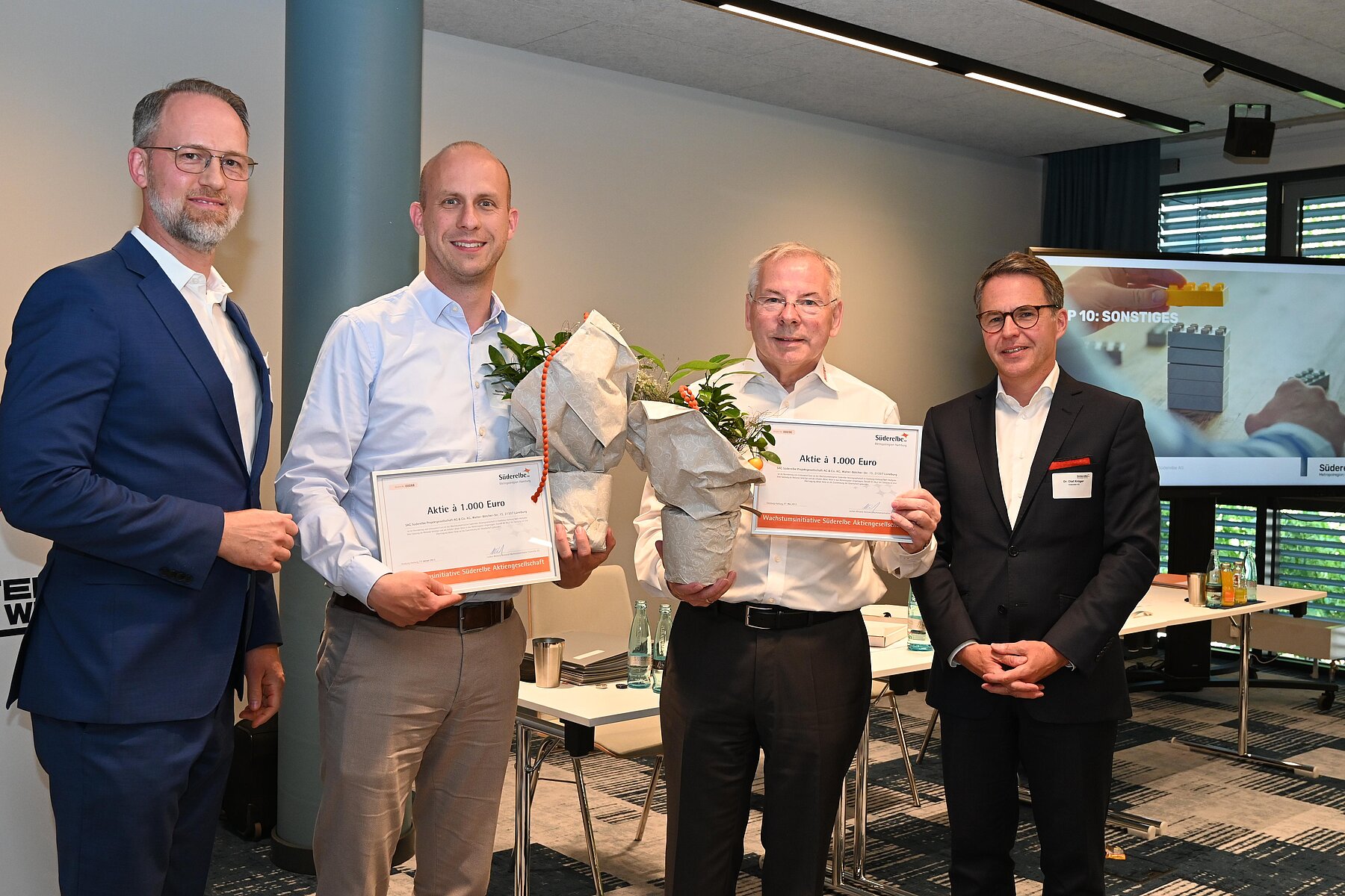 Das Aktionärsnetzwerk der Süderelbe AG wächst weiter: der Geschäftsführer der metronom Eisenbahngesellschaft, Nicolai Volkmann, nahm im Rahmen der 18. Hauptversammlung der Süderelbe AG im Tempowerk Hamburg am 13.06.2023 die Aktie von Vorstand Dr. Olaf Krüger entgegen.
