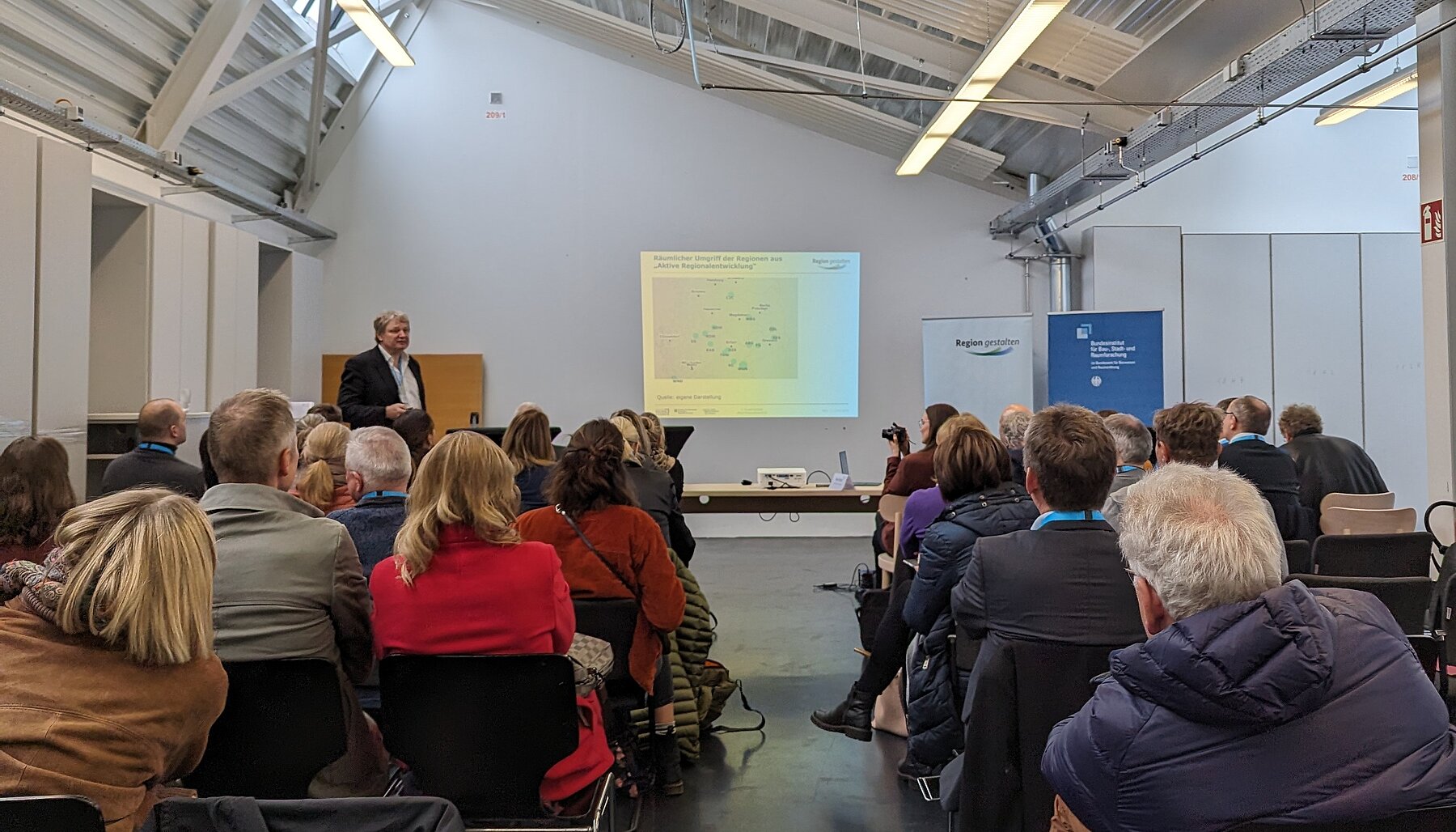 Rund 50 Menschen aus der Förderinitiative, Verwaltung und Politik begutachteten und diskutierten gemeinsam die Projektergebnisse der verschiedenen Modellvorhaben. So etwa zum klimabedingten Strukturwandel im Naturpark Diemelsee (Nordrhein-Westfalen) oder zur regionalen Versorgung in Oberspreewald-Lausitz (Brandenburg). Die Landkreise Lüchow-Dannenberg und Lüneburg haben gemeinsam mit den Projektpartnern, der Technischen Universität Hamburg, der Leuphana Universität Lüneburg und der Süderelbe AG über Möglichkeiten der Regionalentwicklung im Rahmen der Kreislaufwirtschaft informiert. Die Modellregion wurde dabei von Seiten der Begleitforschung als eines der innovativsten Modellvorhaben des Förderprogramms hervorgehoben.