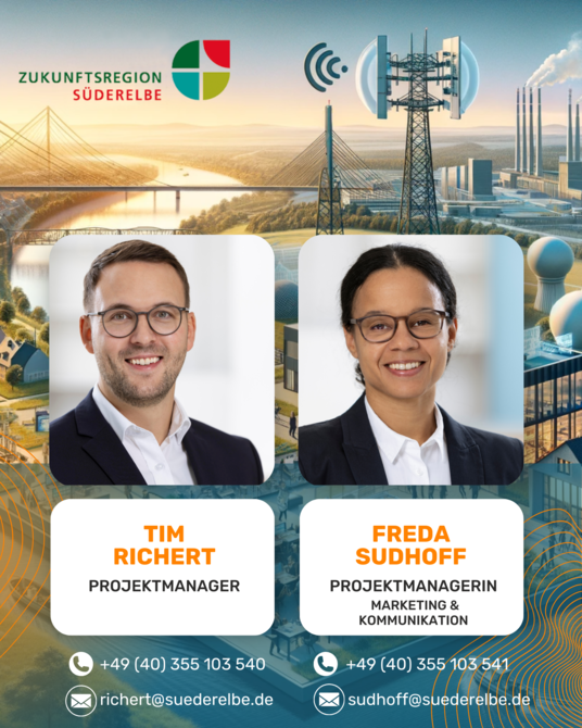 Seit dem 1.1.2024 sind Freda Sudhoff & Tim Richert als Regionalmanagement der Zukunftsregion Süderelbe zuständig für das Management und die Koordination der Projektauswahlverfahren. Wichtige Aspekte ihrer Arbeit sind die Beratung sowie die konkrete Realisierung von Projekten. Dabei bilden sie die Schnittstelle zwischen den Landkreisen Harburg (Leadpartner), Lüneburg, Stade, sowie der Hansestadt Lüneburg und der Steuerungsgruppe als übergeordnetes Entscheidungsgremium bei der Projektauswahl.